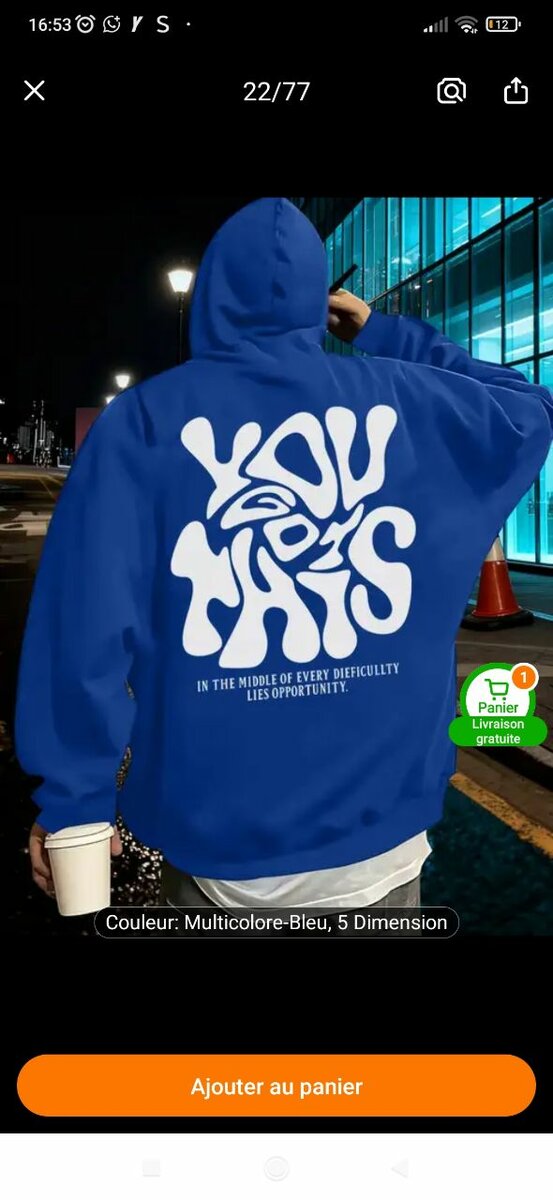 Découvrez notre sweat à capuche bleu vif avec un design graphique audacieux au dos. Fabriqué pour le confort avec une coupe moderne, idéal pour un look décontracté en toutes saisons. Parfait pour les soirées fraîches ou pour faire une déclaration de style.