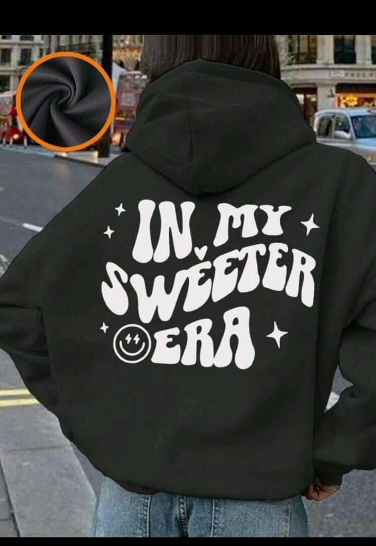 Découvrez notre sweat à capuche chaleureux 'In My Sweeter Era'. Parfait pour les jours frais, ce sweat combine confort et style avec son design graphique unique. Idéal pour les sorties décontractées ou les moments de détente à la maison. Matière douce et durable pour un confort optimal. Rehaussez votre garde-robe avec cette pièce incontournable!