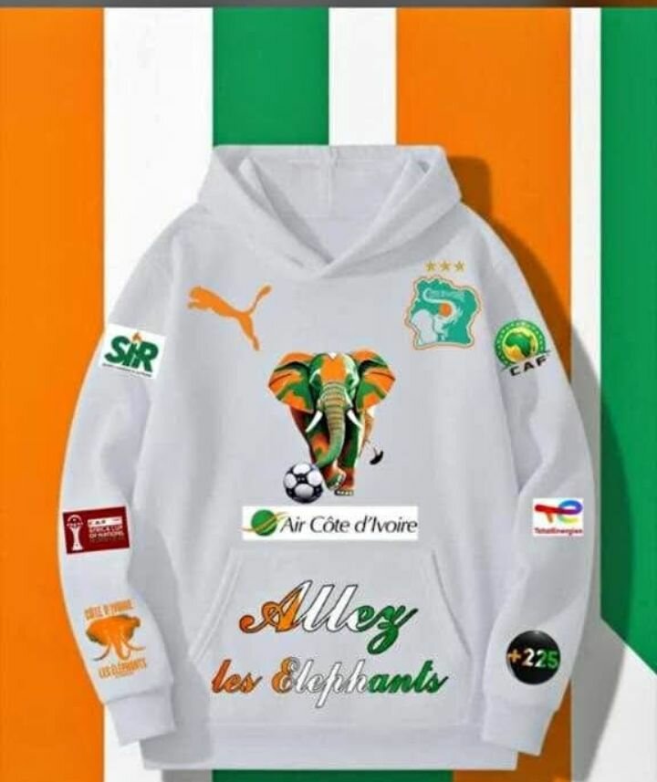 Sweat officiel de l'équipe nationale de football de Côte d'Ivoire. Conçu pour les supporters, il est équipé d'un design éléphant et des logos des sponsors. Confortable et chaud, c'est le vêtement idéal pour afficher votre soutien.