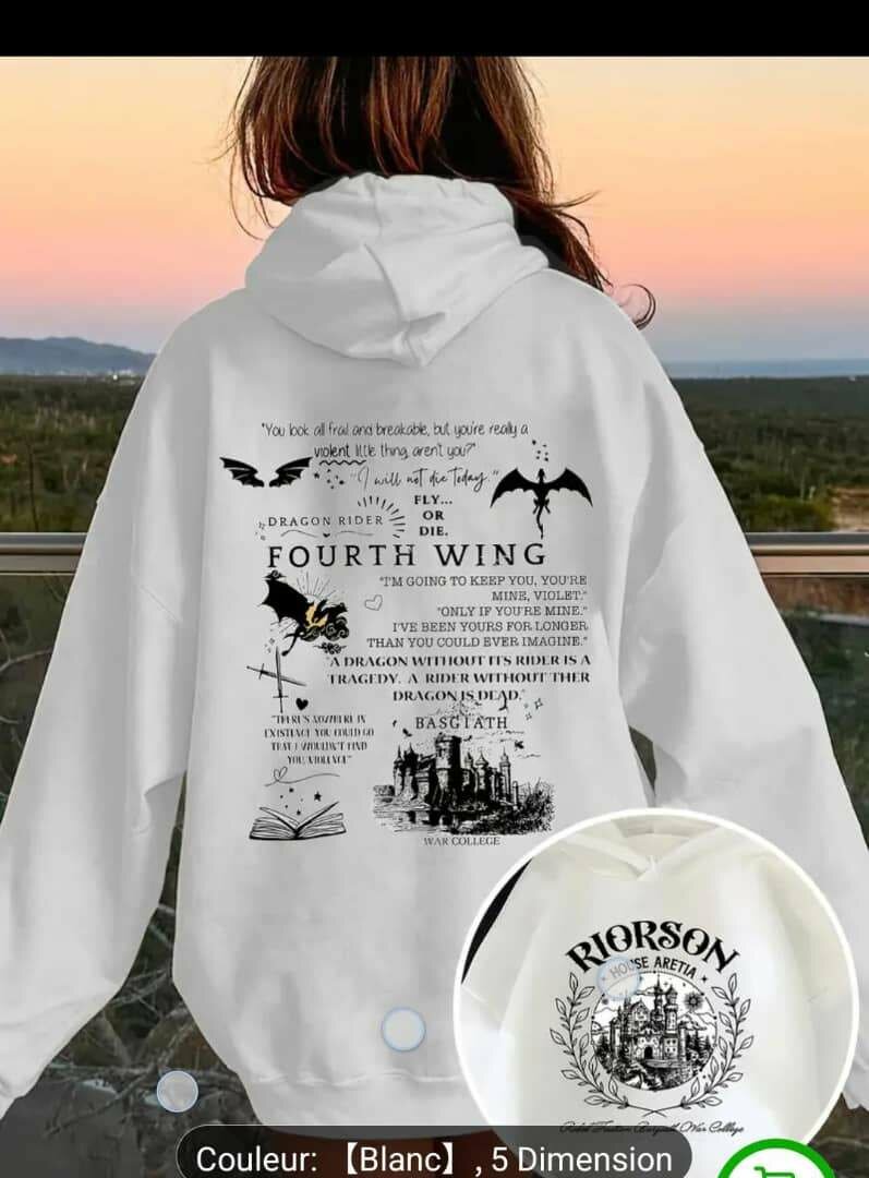Sweat à capuche Fourth Wing pour les fans de la série. Conception unique et confortable, idéal pour un usage quotidien ou comme cadeau.