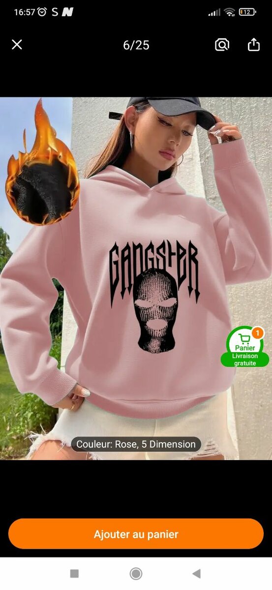 Optez pour ce sweat à capuche rose avec design unique "Gangster" et tête de mort. Confortable et stylé, idéal pour un look urbain. Parfait pour les sorties décontractées ou les soirées fraîches. Disponible en plusieurs tailles.