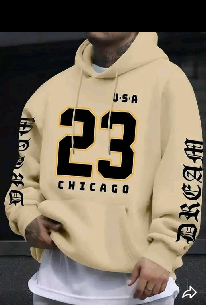 Sweat à capuche pour homme de couleur beige avec impression U.S.A et Chicago. Conçu pour un confort optimal, idéal pour le quotidien ou pour faire du sport.