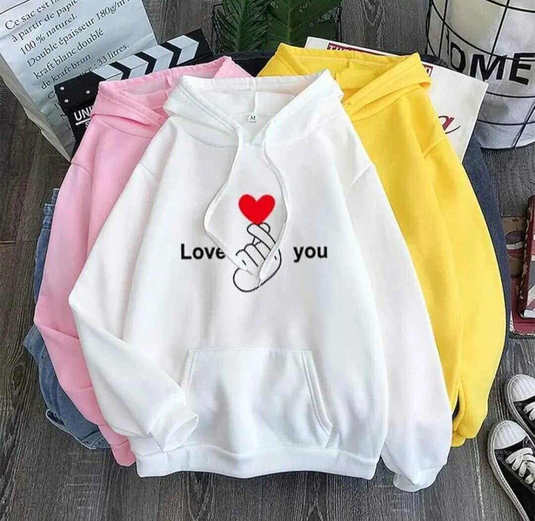 Découvrez notre sweat à capuche confortable et tendance avec un design 'Love You'. Idéal pour les femmes qui aiment le style décontracté. Conçu en matière douce, il est parfait pour une journée décontractée ou une soirée avec amis.