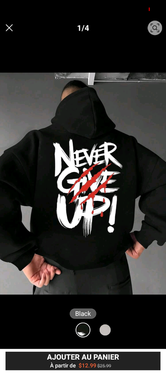 Découvrez ce sweat à capuche noir avec l'inscription inspirante 'Never Give Up'. Parfait pour garder la motivation, il est idéal pour les activités sportives ou les tenues décontractées. Confortable et stylé, c'est le choix parfait pour ceux qui ne se laissent jamais abattre.