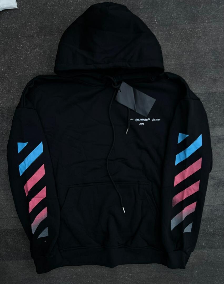 Explorez le style urbain avec ce sweat à capuche Off-White. Conçu pour allier confort et mode, il offre une allure contemporaine avec des motifs colorés sur les manches. Idéal pour les journées décontractées ou pour impressionner lors de vos sorties en ville. Fabriqué à partir de matériaux de haute qualité pour une durabilité et un confort optimal. Parfait pour les passionnés de mode urbaine.