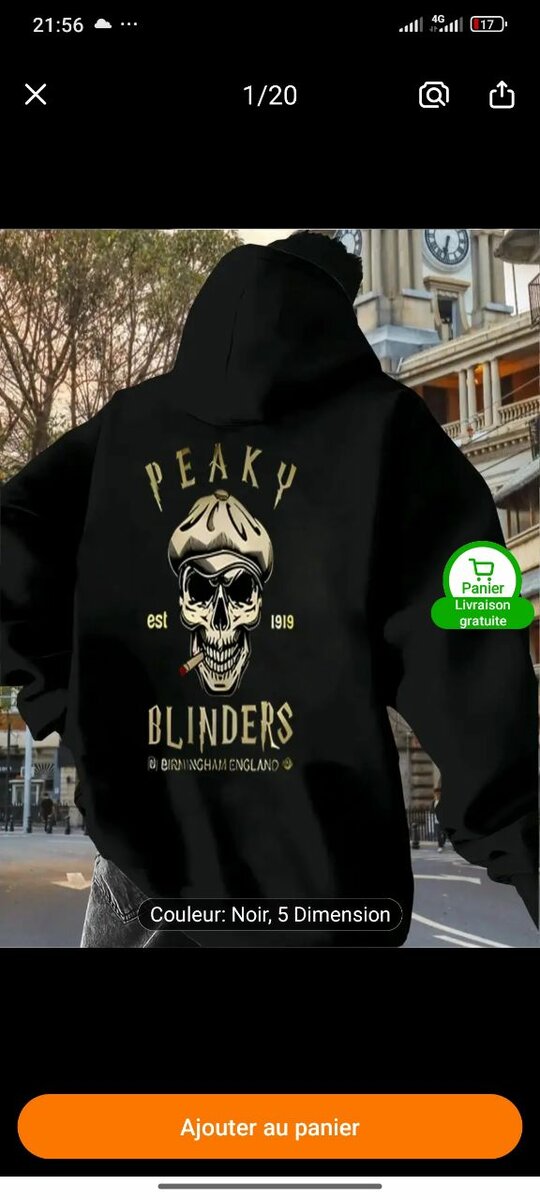 Affichez votre style avec ce sweat à capuche Peaky Blinders. Confortable et tendance, idéal pour les fans de la série culte. Disponible en bleu et noir.