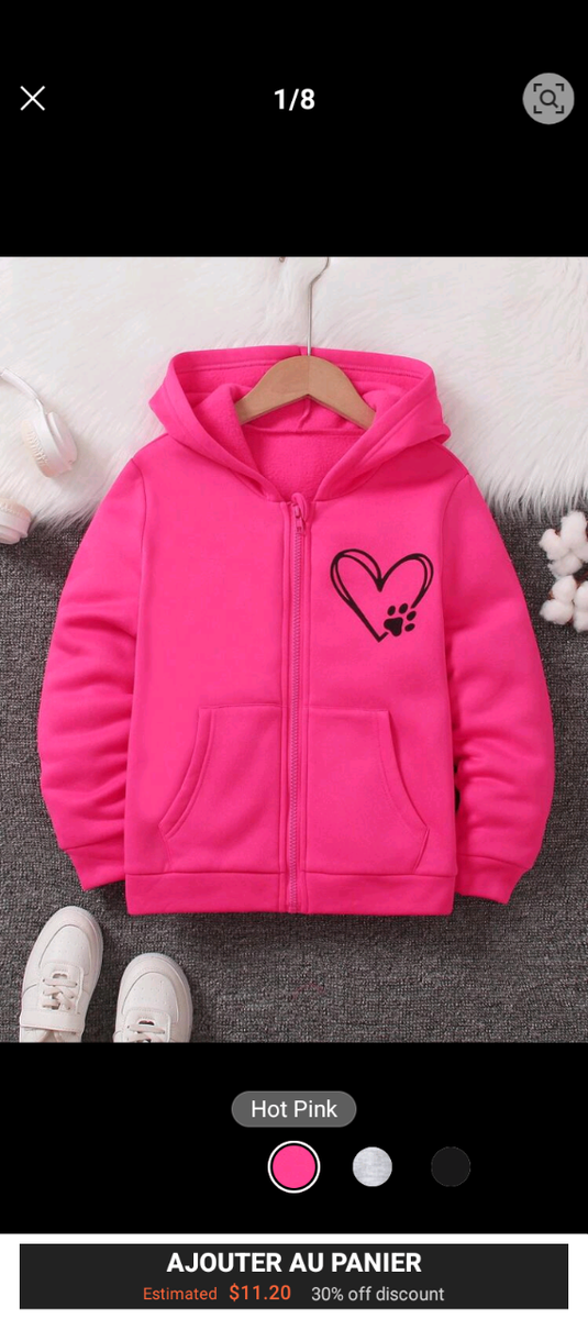 Ce sweat à capuche rose vif pour fille est parfait pour les journées fraîches. Confortable et doux, il présente un motif cœur adorable, idéal pour un style mignon et décontracté. Idéal pour l'école ou les sorties.