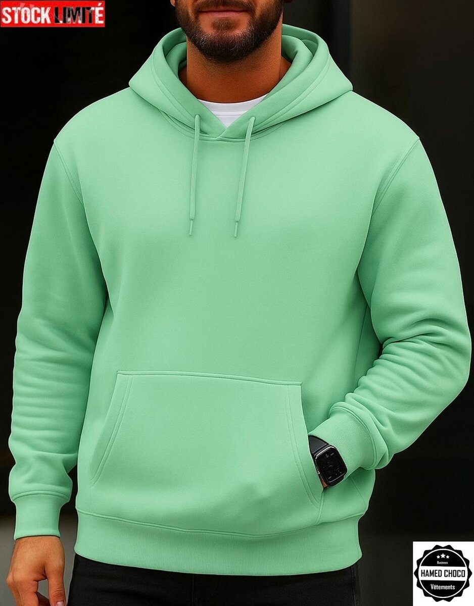 Restez tendance avec ce sweat à capuche vert mint, idéal pour un look casual et confortable. Fabriqué en coton doux, il est parfait pour les journées fraîches ou une soirée décontractée. Sa poche kangourou pratique et sa capuche réglable ajoutent fonctionnalité et style. Un choix parfait pour le quotidien !