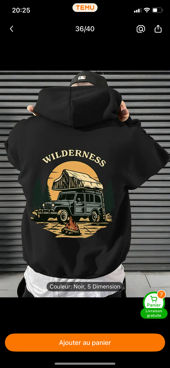 Explorez la nature avec ce sweat à capuche Wilderness, idéal pour les amoureux de l'aventure. Design unique et impression audacieuse, parfait pour les escapades en plein air. Confortable et stylé, il vous accompagne partout.