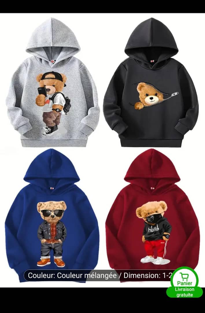 Adorables sweat-shirts pour enfants avec des imprimés de nounours stylise ces pulls offrent confort et style avec des designs amusants. Idéal pour un look décontracté et branché, parfait pour les sorties ou l'école.
