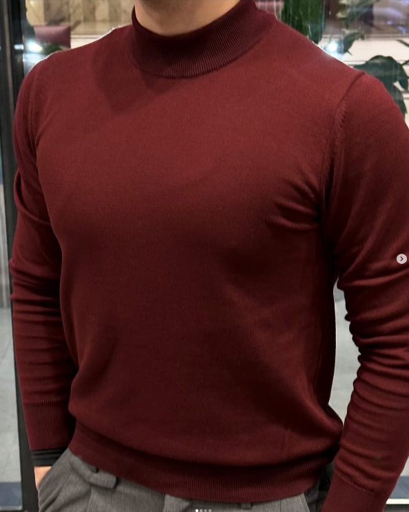 бордовая водолазка с низким воротом