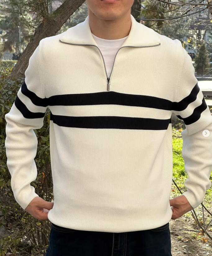 Свитер полу замок в полоску