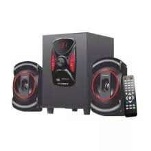 Profitez d'un son immersif avec ce système audio 2.1. Comprend deux enceintes et un caisson de basses pour des basses profondes. Livré avec une télécommande pratique pour un contrôle facile. Idéal pour les films, la musique et les jeux.