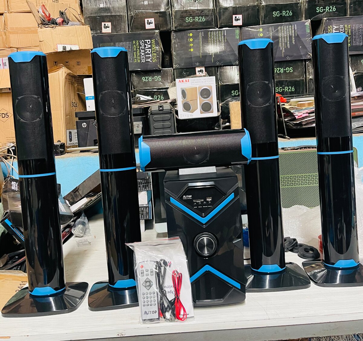 Profitez d'une expérience sonore immersive avec ce système home cinéma 5.1 d'ALITOP, modèle SP-6551. Parfait pour les amateurs de film et musique, il transforme votre salon en salle de cinéma avec un son surround de haute qualité. Simple à installer, il intègre des fonctionnalités modernes et une télécommande pour un contrôle facile.