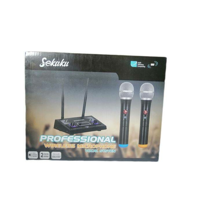 Découvrez le système microphone sans fil Sekaku, idéal pour les chanteurs et présentateurs. Profitez de la liberté de mouvement avec deux microphones de haute qualité. Parfait pour des performances vocales claires et dynamiques.