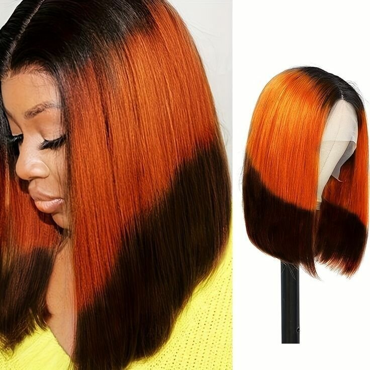 Short Synthetic Wigs for Women Straight Bob Middle Part Cop
