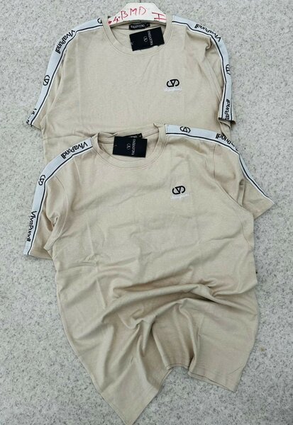 T-shirt beige en coton avec détails noirs sur les manches. Idéal pour un style décontracté, ce t-shirt est confortable et polyvalent, parfait pour une tenue quotidienne.