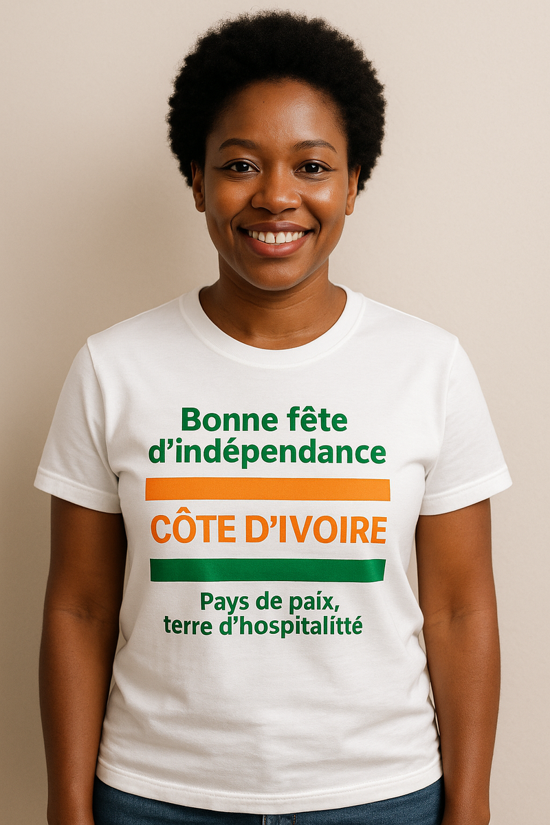 Célébrez l'indépendance avec ce t-shirt confortable et stylé. Parfait pour montrer votre amour pour la Côte d'Ivoire lors des festivités. Disponible pour toutes les occasions patriotiques.