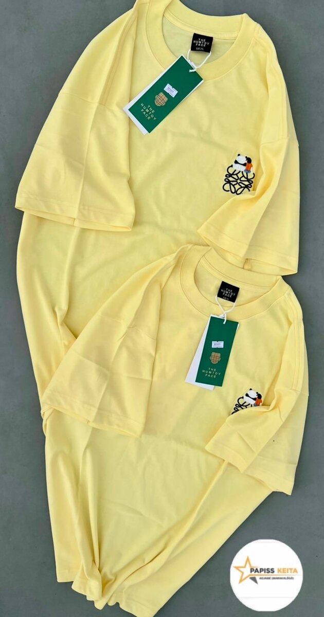 Ensemble de T-shirts jaunes assortis avec un design ludique, idéal pour les couples ou pour des looks coordonnés. Confortables et stylés, parfaits pour des sorties décontractées.