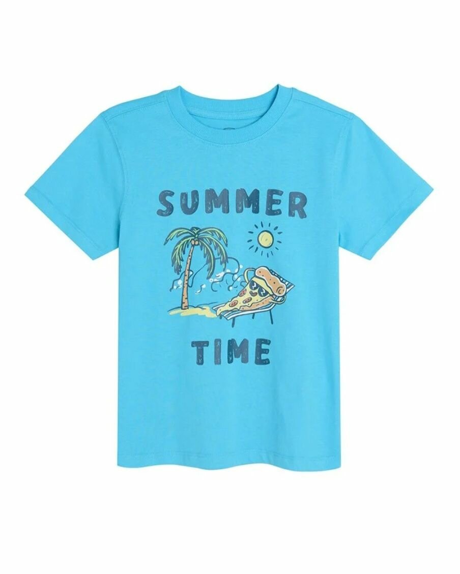 Ce t-shirt bleu ciel, orné du motif "Summer Time", est parfait pour des journées ensoleillées. Fabriqué en coton doux, il garantit un confort optimal. Idéal pour les aventures estivales de votre enfant. Disponible en plusieurs taille 6 ans et 10 ans