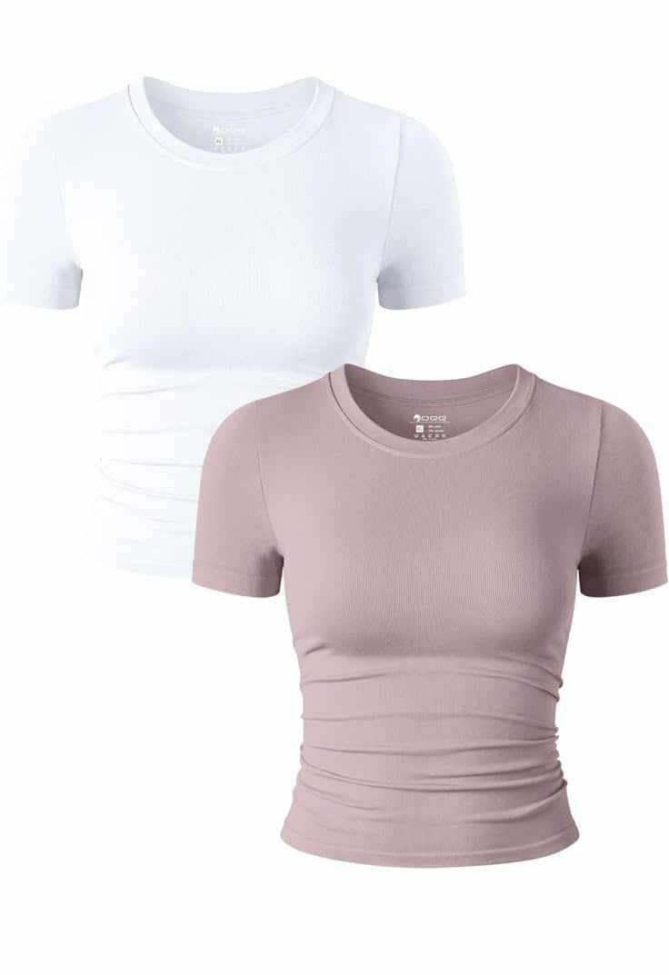 Ensemble tendance de 2 t-shirts femme, idéal pour un look moderne et décontracté. Fabriqués en tissu doux et respirant, parfaits pour le quotidien.
