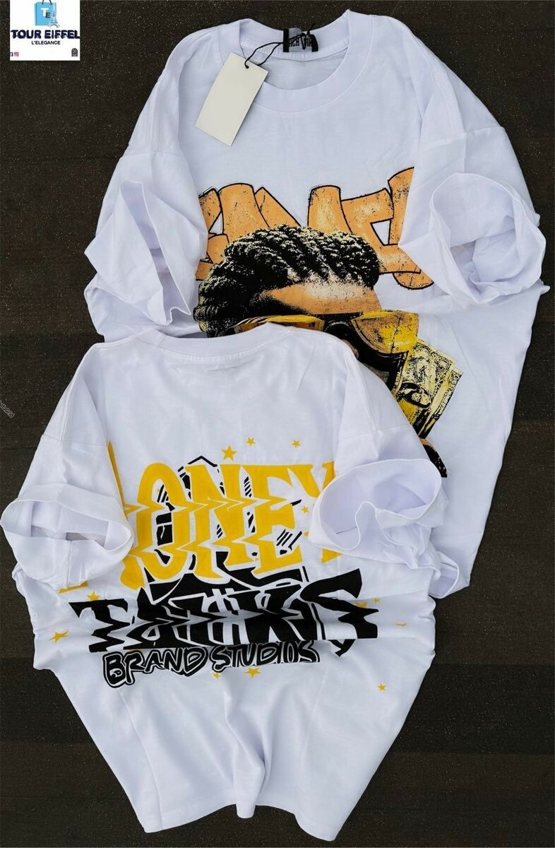 T-shirt au design artistique graffiti, parfait pour un look urbain et décontracté. Fabriqué en coton doux pour un confort optimal. Idéal pour les amateurs de mode urbaine.