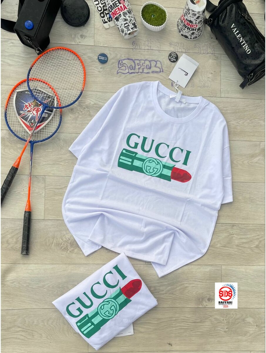 Découvrez ce T-shirt blanc Gucci avec un design unique de rouge à lèvres. Fabriqué en coton de haute qualité, il offre un confort exceptionnel pour un style décontracté et élégant. Parfait pour les amateurs de mode qui cherchent à se démarquer. Associez-le avec un jean ou un short pour un look tendance.