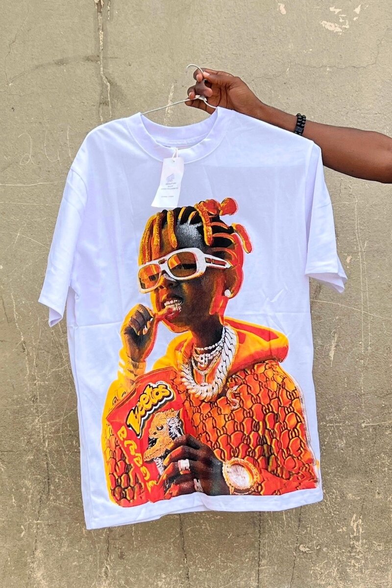 Optez pour un style audacieux avec ce T-shirt imprimé tendance inspiré du hip-hop. Fabriqué en coton doux, il est idéal pour un look décontracté au quotidien. Parfait pour les amateurs de mode urbaine, ce T-shirt apportera une touche originale à votre garde-robe. Disponible dans toutes les tailles.
