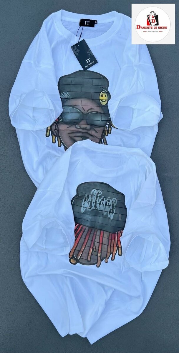 Adoptez un style unique avec ce T-shirt blanc à imprimé créatif. Conçu pour le confort et le style, il est parfait pour une tenue décontractée.