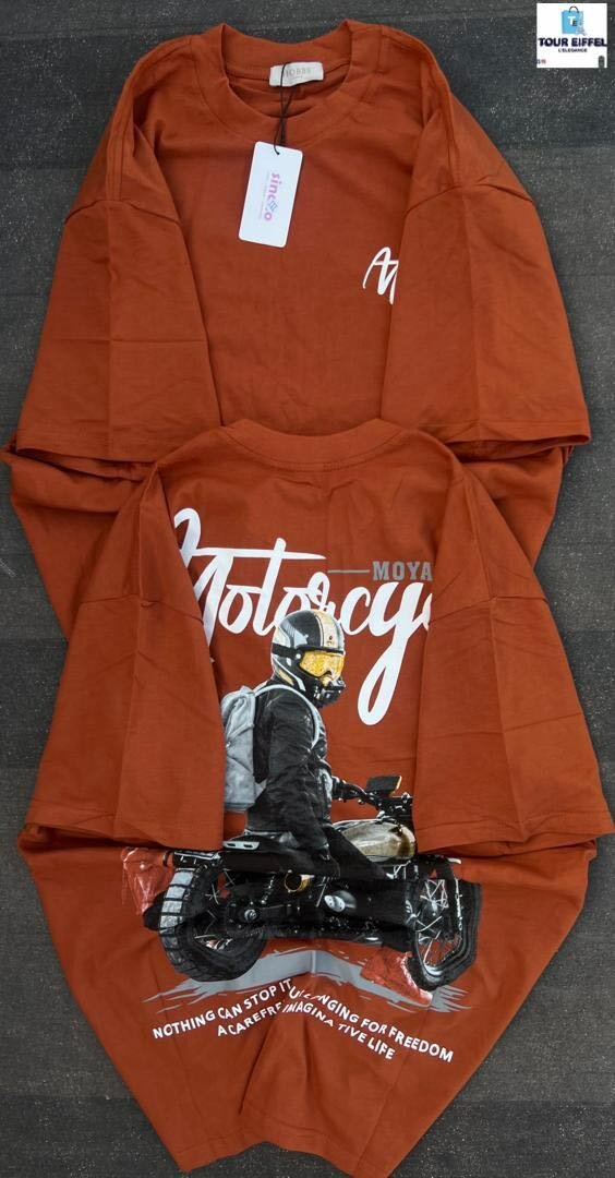 T-shirt homme tendance avec motif motocycliste. Idéal pour les passionnés de moto. Confortable et stylé, parfait pour un look décontracté. Fabriqué en matériaux de haute qualité.