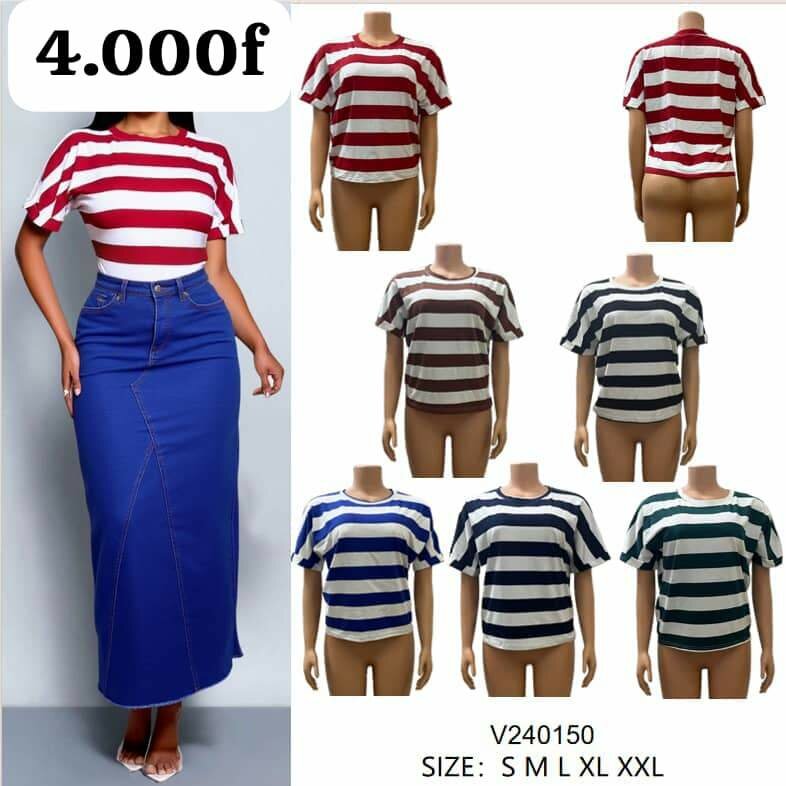 Découvrez notre t-shirt rayé femme, idéal pour un style décontracté et moderne. Disponible en plusieurs tailles, il s'adapte parfaitement à toutes les morphologies. Son matériau doux assure un confort inégalé, que ce soit pour une journée décontractée ou une sortie entre amis. Associez-le avec une jupe ou un jean pour un look chic et intemporel.
