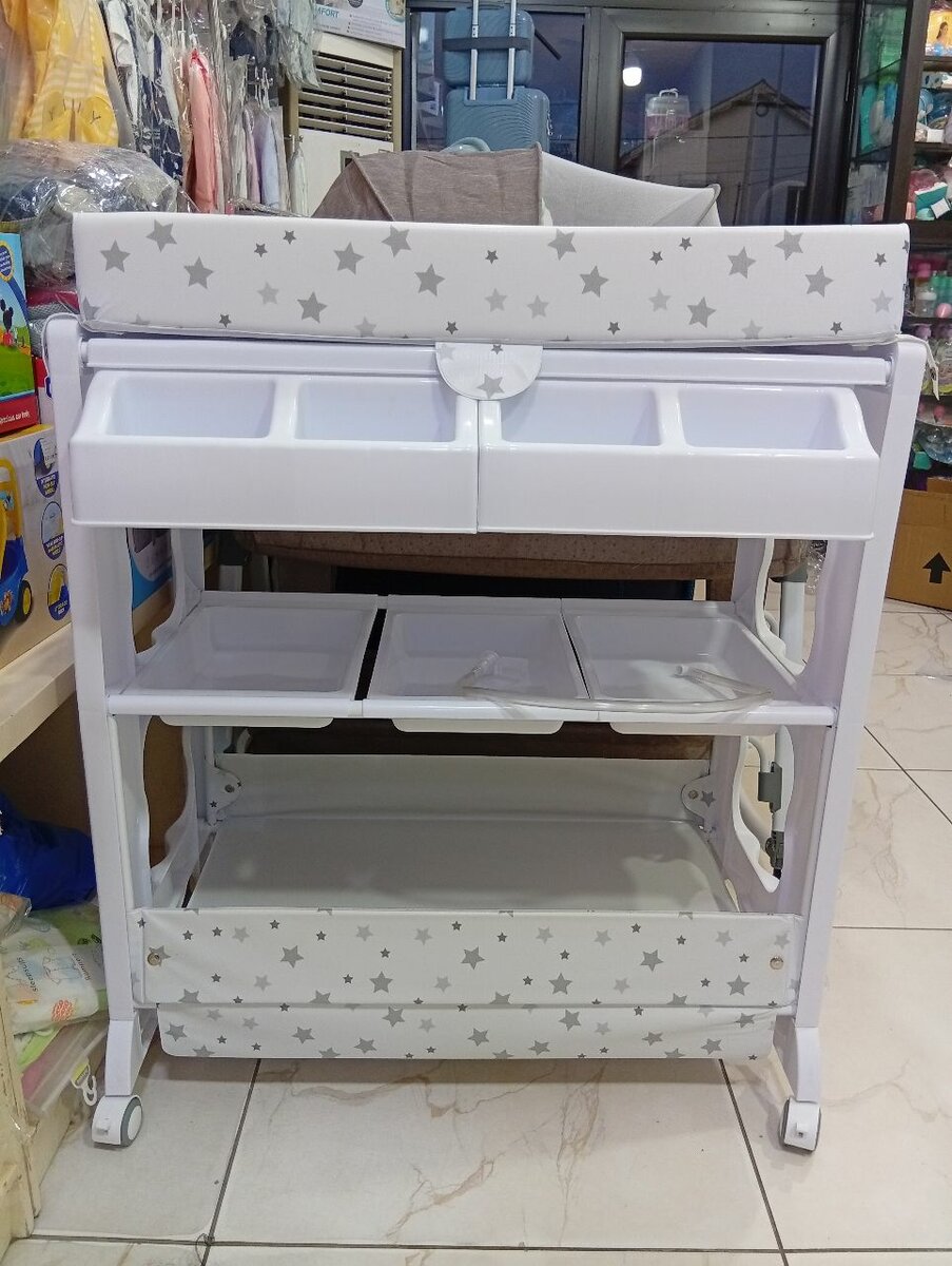 Optimisez l'espace et facilitez le change de votre bébé avec cette table à langer étoilée. Dotée de plusieurs étagères pour un rangement pratique, elle est idéale pour garder toutes les affaires de bébé à portée de main. Parfaite pour les parents en quête de confort et sécurité.
