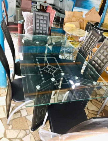 Élégante table à manger en verre avec six chaises modernes. Idéale pour les repas en famille ou entre amis. Le design contemporain et les matériaux de qualité ajoutent une touche sophistiquée à votre salle à manger. Facile à entretenir et durable.