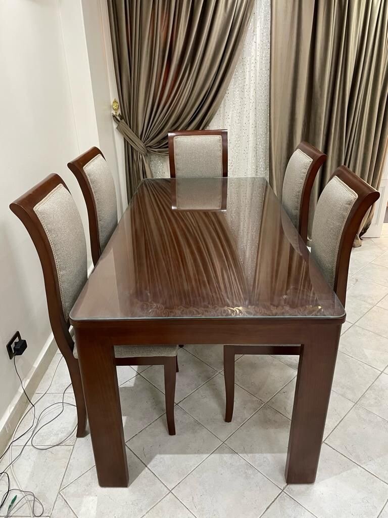 Élégante table à manger avec 6 chaises, parfaite pour les repas en famille. Finition bois de qualité et design moderne. Idéale pour ajouter une touche sophistiquée à votre salle à manger.