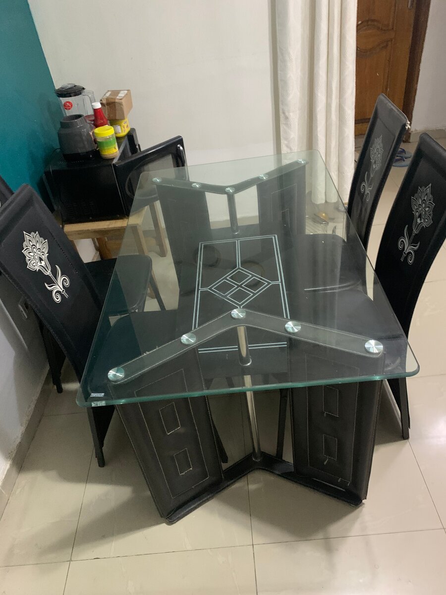 Cette élégante table à manger en verre avec quatre chaises ornées est idéale pour une salle à manger contemporaine. Son design transparent et ses motifs raffinés ajoutent une touche de sophistication à votre intérieur. Parfaite pour accueillir la famille et les amis lors de repas conviviaux.