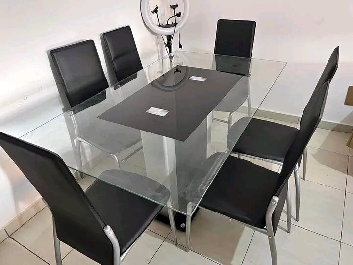 Découvrez notre table à manger élégante avec surface en verre trempé et six chaises confortables en simili cuir noir. Parfaite pour ajouter une touche contemporaine à votre salle à manger. Idéale pour des dîners en famille ou entre amis.