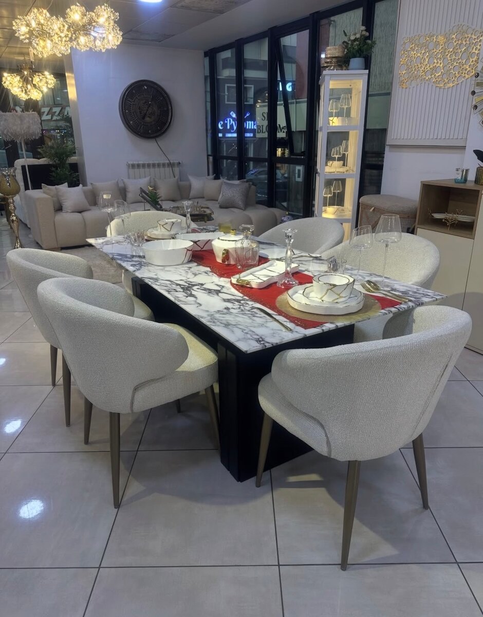 Transformez votre salle à manger avec cette élégante table en marbre. Son design moderne et minimaliste s'accorde parfaitement à tout intérieur. Parfaite pour des dîners sophistiqués ou des réunions familiales, elle apporte une touche de luxe indéniable. La robustesse du marbre assure une durabilité sans faille, tandis que ses dimensions spacieuses offrent un confort inégalé pour vos convives.
