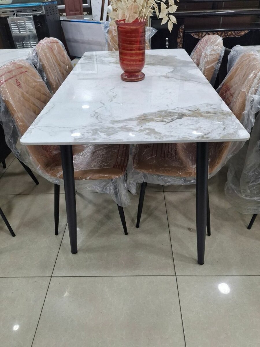 Cette élégante table à manger en marbre est un ajout parfait pour toute salle à manger moderne. Son design épuré et ses matériaux de haute qualité complètent élégamment votre intérieur. Idéale pour des dîners en famille ou entre amis, elle apporte une touche de sophistication à votre maison.