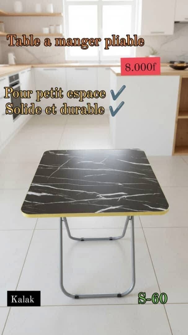 Table à manger pliante idéale pour les petits espaces. Fabriquée avec des matériaux solides et durables, elle est parfaite pour la cuisine ou le salon.