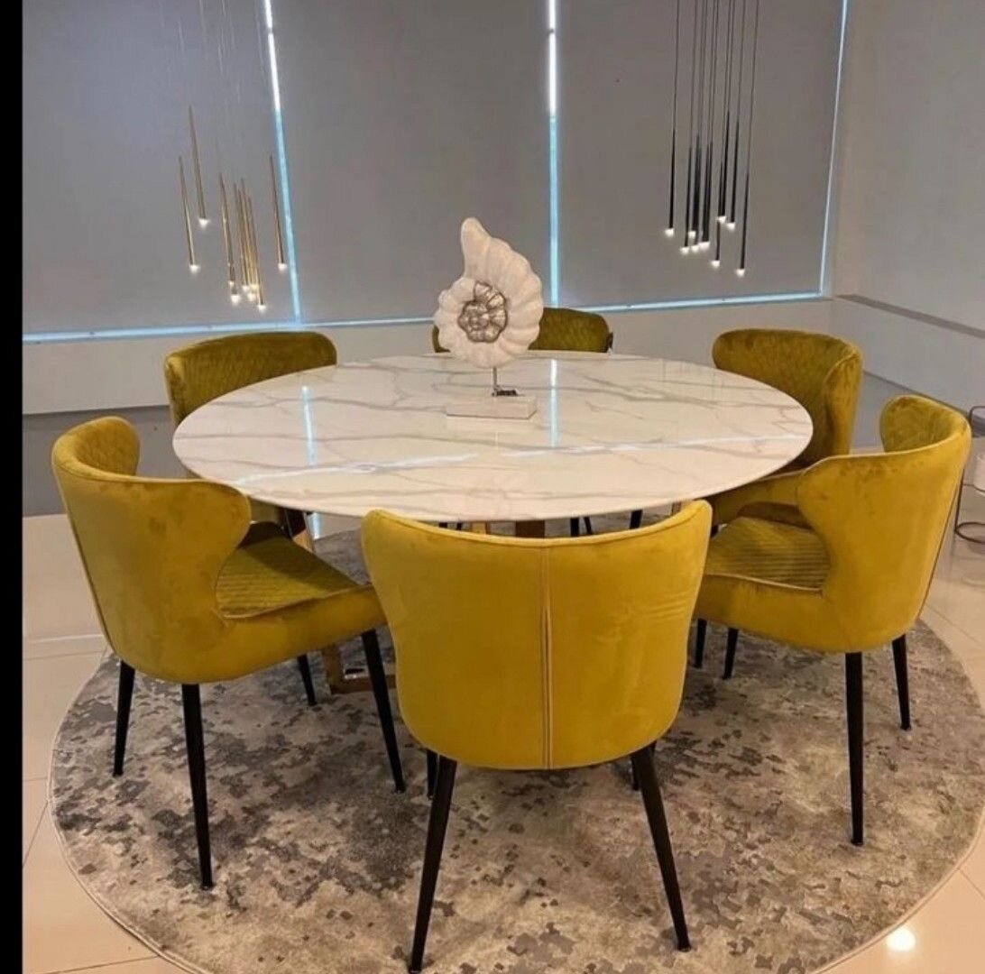 Découvrez notre table à manger ronde en marbre blanc, parfaite pour les repas en famille ou entre amis. Son design élégant et son matériau de haute qualité en font un ajout idéal à votre salle à manger.