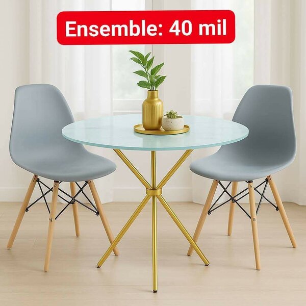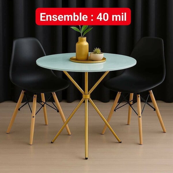 Élégante table à manger ronde avec des chaises noires, idéale pour un intérieur contemporain. Fabriquée avec un design moderne en marbre noir, offrant à votre salle à manger une allure chic et sophistiquée. Parfaite pour les repas familiaux ou les réceptions.