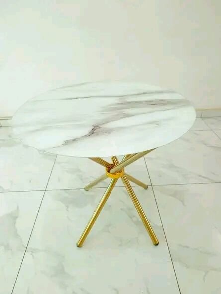 Table basse ronde élégante avec plateau en marbre ou verre et base en métal, design moderne pour salon