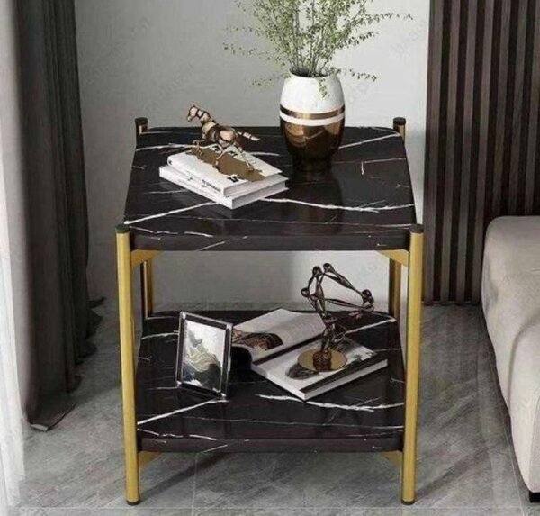 Élégante table basse en verre noir avec étagère inférieure pour un rangement élégant. Parfaite pour le salon moderne.