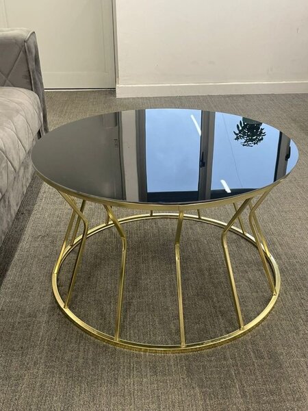 Élégante table basse en métal doré et plateau en bois, idéale pour un salon contemporain. Sa structure complexe et moderne rehausse n'importe quel espace tout en offrant une vaste surface pour vos décorations ou livres. Parfaite pour un intérieur chic et sophistiqué.