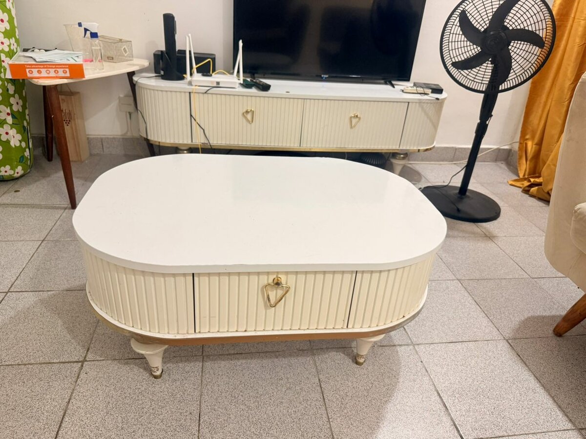 Apportez une touche de modernité avec cette table basse ovale au design raffiné et un meuble télé.Idéale pour le salon, et le bureau