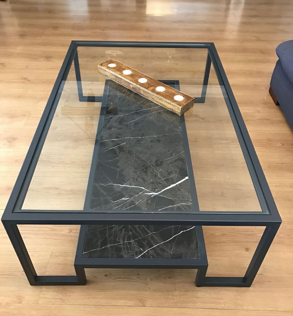 Découvrez cette élégante table basse en verre et marbre noir, idéale pour sublimer votre salon. Son design moderne et épuré s'intègre parfaitement dans tout intérieur contemporain. Parfaite pour exposer vos objets décoratifs ou savourer un café en après-midi.