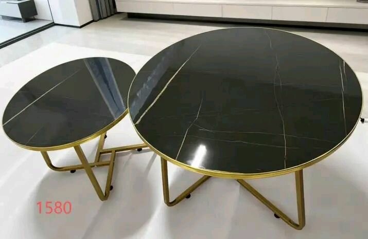 Élégante table basse ronde en marbre avec structure métallique dorée. Design moderne et minimaliste pour salon contemporain. Facile à assembler et durable.