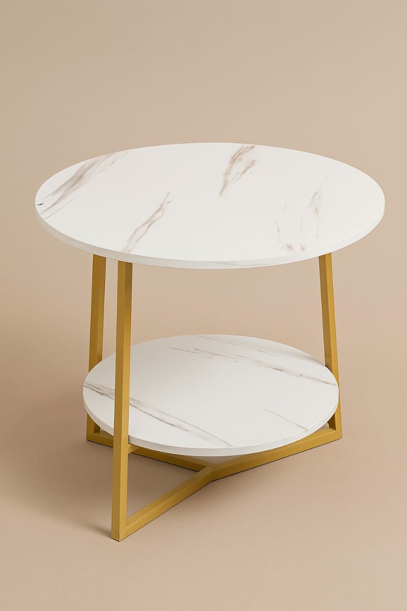 Table basse élégante en marbre avec structure dorée. Idéale pour le salon, cette table offre un espace supplémentaire grâce à ses deux niveaux. Complétez votre intérieur avec une touche de sophistication moderne.