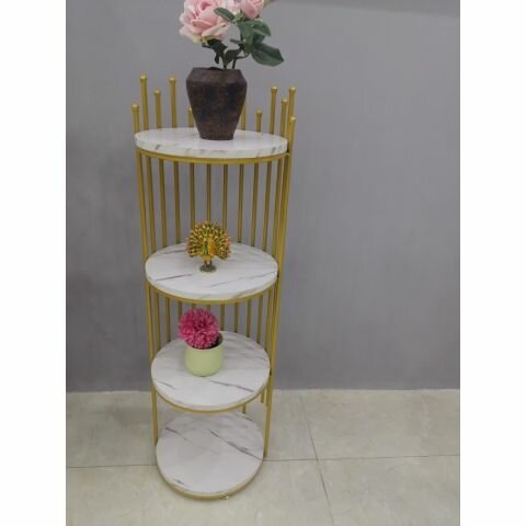 Étagère d'angle élégante et pratique pour votre salon. Design moderne et structure robuste en métal et bois, idéale pour exposer vos objets de décoration.