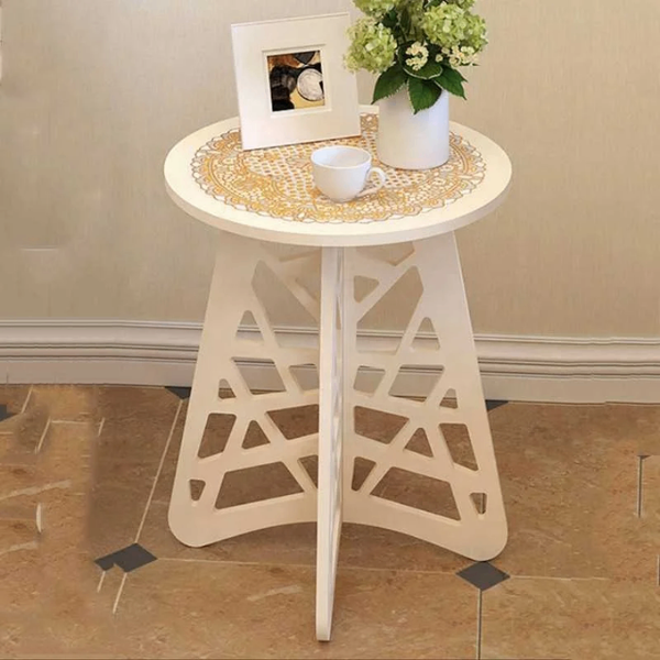 Table d'appoint pliante et élégante avec un design unique en blanc. Parfaite pour les petits espaces, la terrasse ou comme table de chevet supplémentaire.